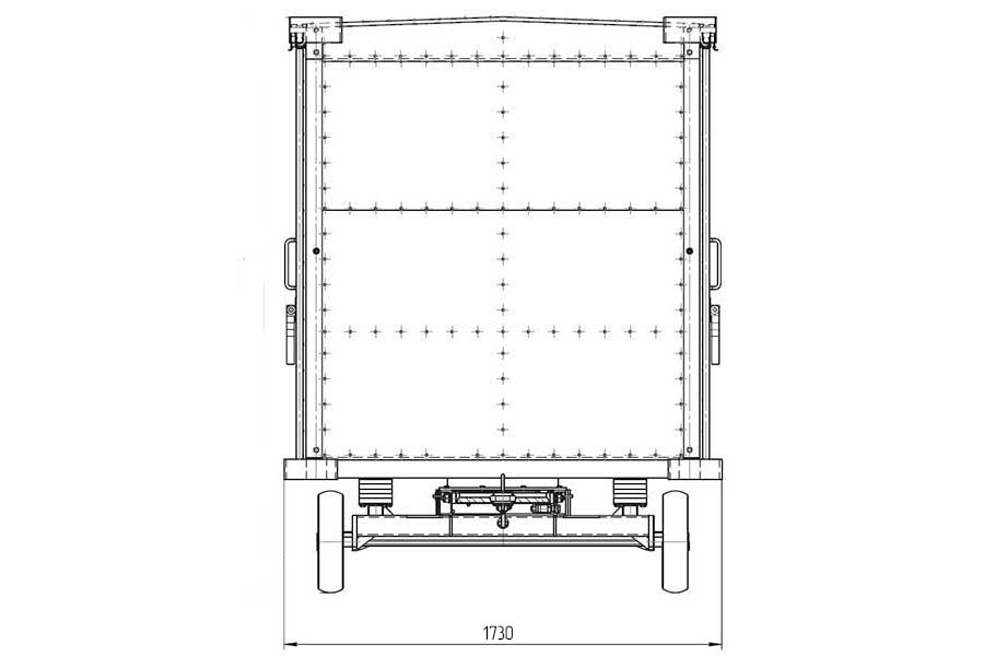 Кузов типа «фургон» оборудован боковыми раздвижными дверями. На заднем борту расположен карман для сопроводительных документов. Днище кузова металлическое и оснащено специальной противоскользящей поверхностью. Настил пола V- образной формы с углом развала в пределах 174-178 градусов. Фургон тележки покрыт двускатной крышей. В данной модели предусмотрено наличие защитного замка, позволяющего обеспечить сохранность груза.