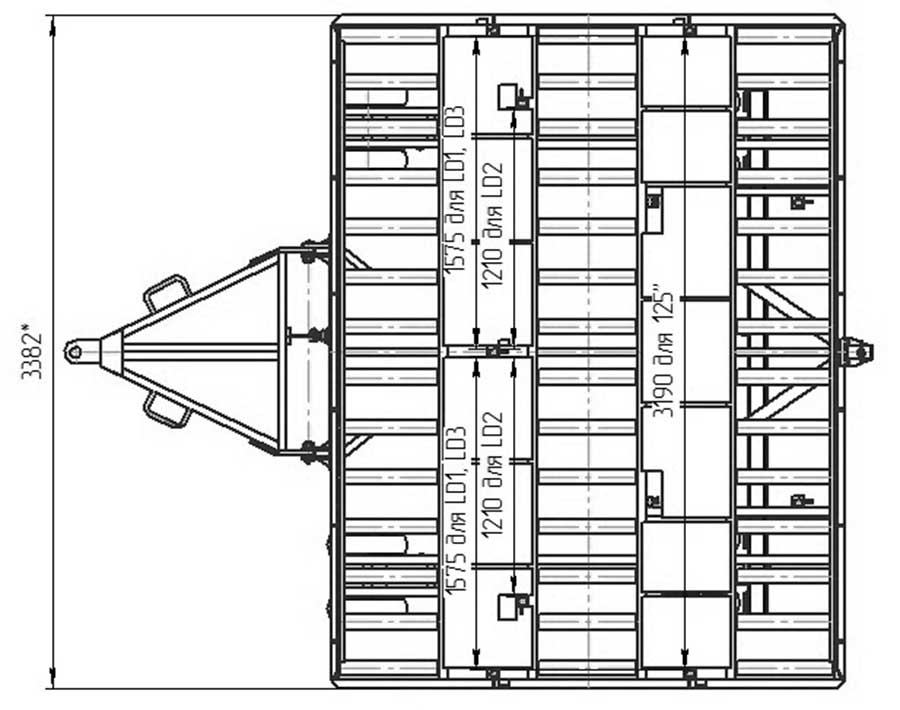 Предназначение: для перевозки паллет 96"х125", 88"х125", и контейнеров 2хLD1, LD2, LD3 (с фиксацией каждого отдельного контейнера и паллеты) на закрытых территориях (аэропорт). Конструкция тележки – это поворотная стальная рама на четырех опорах. На каждой опоре крепится по 2 колеса.
